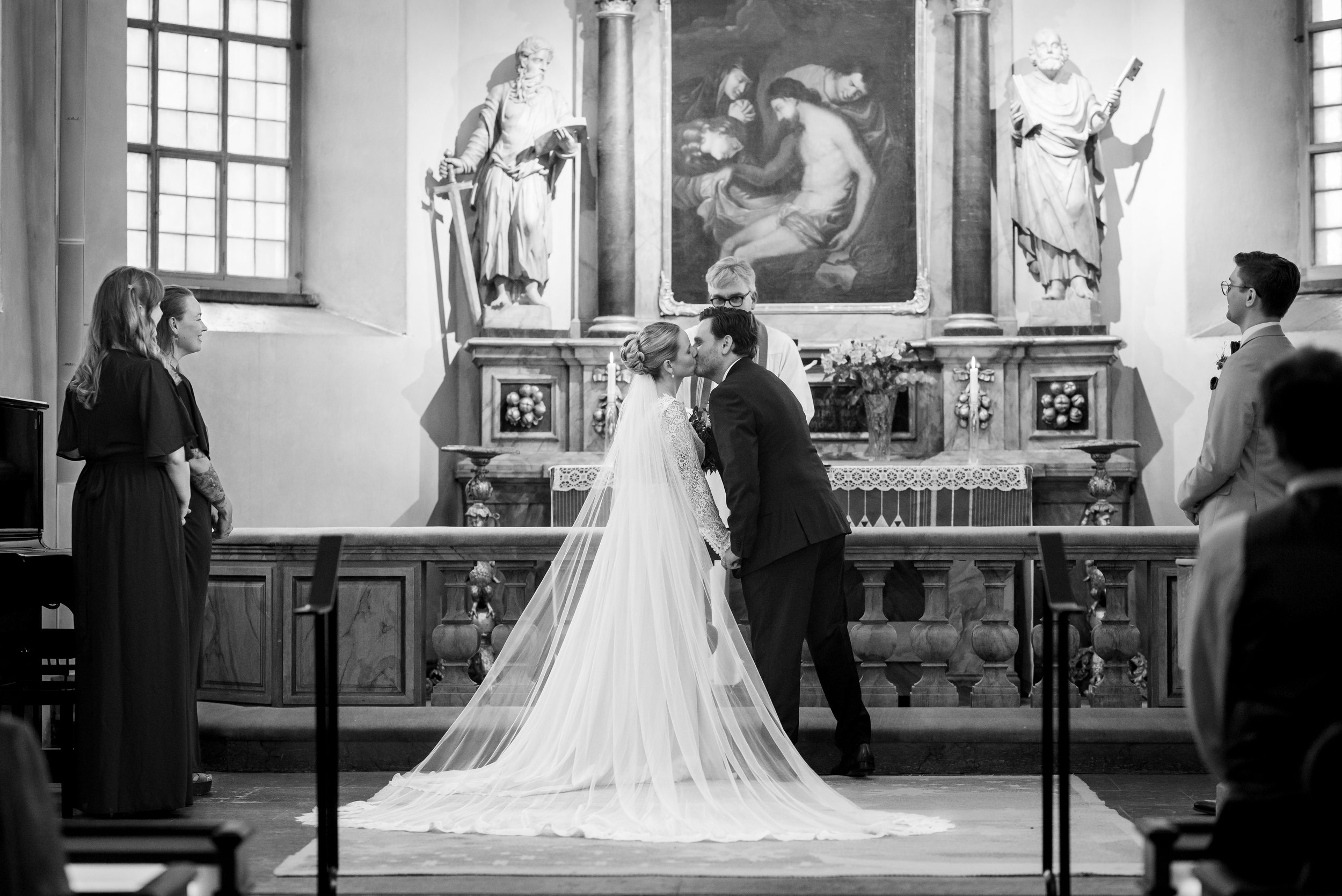 Stockholm har många vackra kyrkor och jag har hunnit fota vigslar i en hel del. Men det jag skulle säga att Bromma kyrka sticker ut med är: